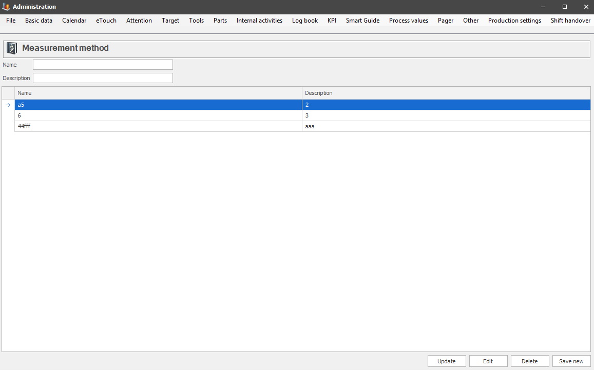 This is found via the admin-section and "Client" -> "Administration" -> "System settings" -> "Internal activities" -> "Measurement metohd". Enter a name / description here. The name / description will be what the user will see in the web application, and in the "Other" form, so the name / description should contain information about what this is intended to do. Just to make it easier to visualize it for the user. This will then be selectable in the "Other" form via "Client" -> "Administration" -> "System settings" -> "Internal activities" -> "Checklist" -> "Other".