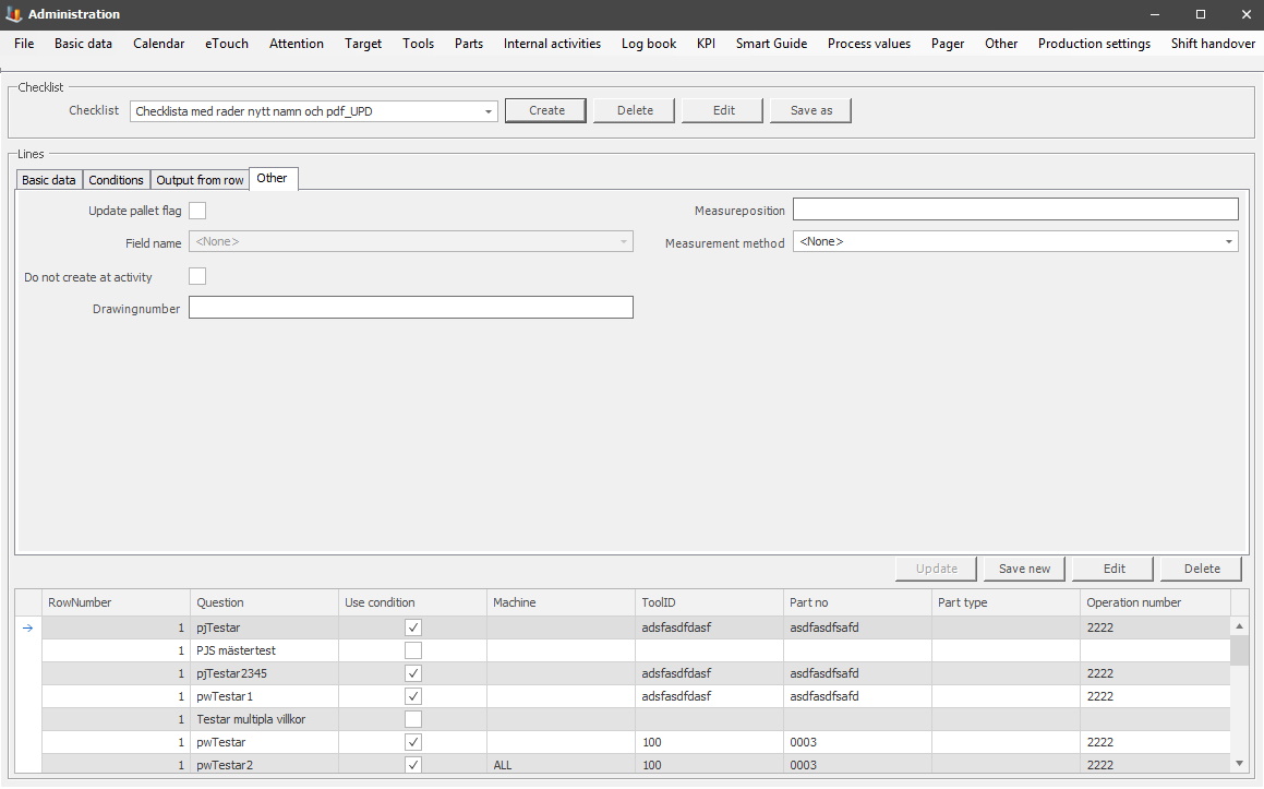 you choose "Pallet flag other 1", this will affect the first row and the first