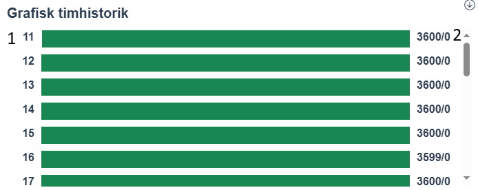 Observera att detta används både i Client och i BZX21. Se ett exempel på hur det kan se ut nedan. Här avser då 1 aktuell timme. Samt att 2 avser då cykler/börvärde.