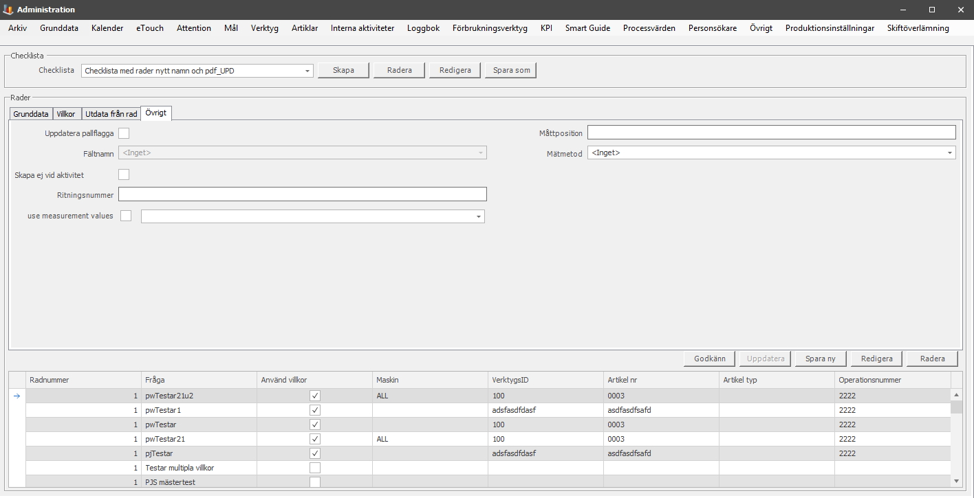 Interna aktiviteten. Väljer du till exempel "Pallflagga övrigt 1" är det alltså rad 1