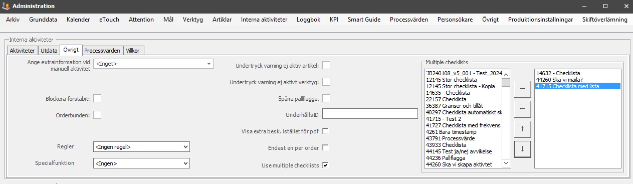 för att flytta checklistorna antingen mellan tabellerna, eller upp / ner i ordiningen.