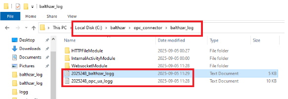 4. Nästa steg är att verifiera att OPC Connectorn inte har några problem. Den genererar loggfiler som man får kolla igenom för att se om det finns några kritiska fel. Det kan handla om att det inte kopplas upp mot servern korrekt, eller att det är några nätverksproblem. Här får man gå igenom dagens loggfiler. Notera att det kan handla om stora filer om det inte skett någon omstart. Man bör söka efter loggfiler som motsvarar tiden för omstart.